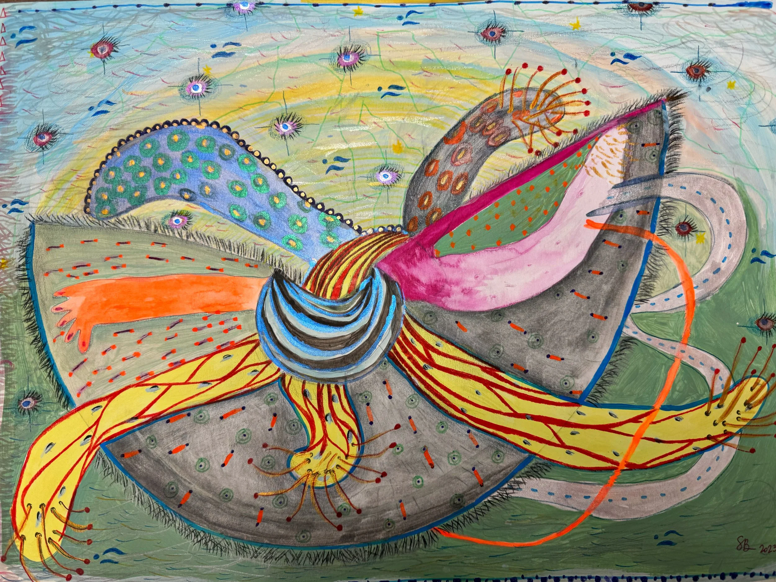 My name is Sophie Bosselut, I'm a French artist, born in Toulouse in 1982, who lives and work now in Switzerland. I have a diverse artistic practice and like to explore new mediums according to the subjects on which I work. At the moment I mainly practice drawing, painting and ceramics. My work takes root in the field of expressionism abstract : coloured by fantasy, in a poetic and organic world where biology, nature, abyssal world, space and micro universe are always in transformation. I did Fine Art School and National School of Décoratives Arts in Paris (ENSAD) where I was specialized in Art Video and Photo. I also studied Morphogenesis at the Beaux-Arts in Paris and this experience has deeply nourished my view of the world. Music, film, spirituality, dreams, nature, reading, cooking are landmarks and inspirations in my life. I have the chance to live in a rather wild environment, just steps from the forest where I love to walk and also to return in my south of France regularly to contemplate the Mediterannée sea and its mountains. I grew up between two totally different and inspiring family branches, on the one hand biologists, pharmacists, politicians, lawyers and on the other, Circassian magicians, mediums, healers...I have a taste of contrast in life quite pronounced and art allows me to express these antipodes!