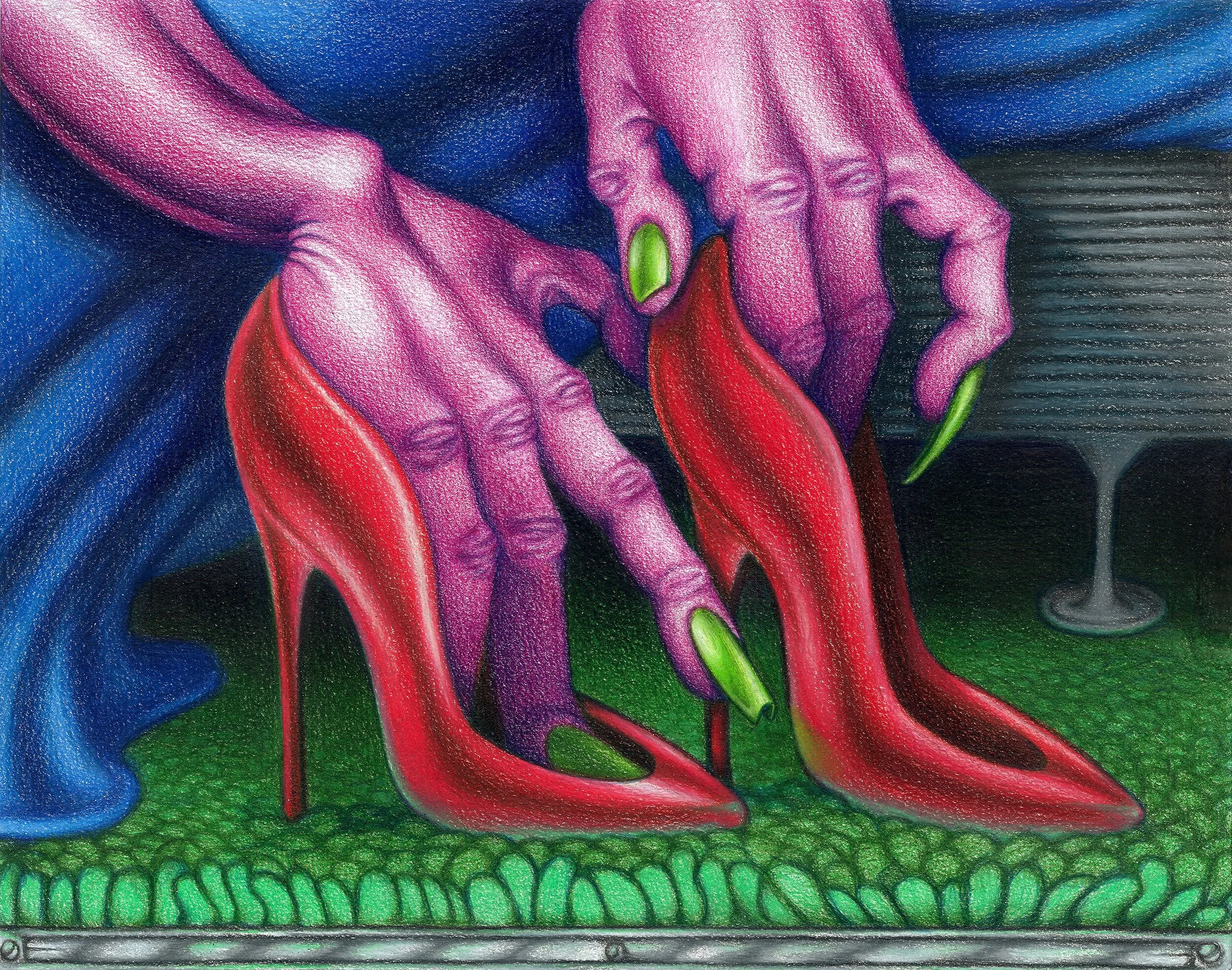 Adam Linn contorts visual languages of cartooning and eroticism to render a world of flamboyant impossibility. Linn articulates curved forms and perspectival shifts as a means to seduce entry into corporeal, jungle-gym like scenes. While resisting conventions of “straightness” in the work, Linn explores themes of sexuality, masculinity, seduction and perception. Operating between an intimate, close to the surface drawing practice and a looser, wet-on-wet painting process, he creates images that glow and vibrate with exaggerated gesture.