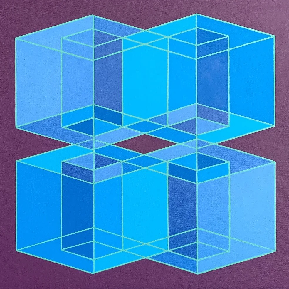 Benjamin F Weaver uses sets of nonorganic geometric elements to illustrate theoretical spatial relationships between forms. The forms are often incomplete and the completion of the forms give potential movement and resolution that needs to be solved. The geometry itself is less important than the movement, relationships, and the group as a whole. Weaver categorizes his work as Geometric Spatial Abstraction. The reductive elements are built within a system that is meant to be understood within its own context.